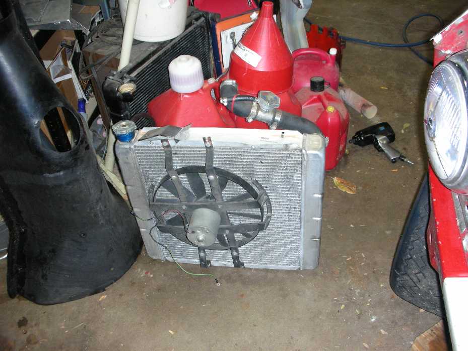 Here's the "takeoffs" - header and scatter shield, tranny cover and radiator, carburetors: