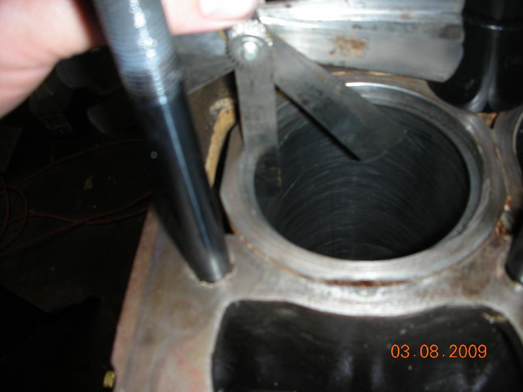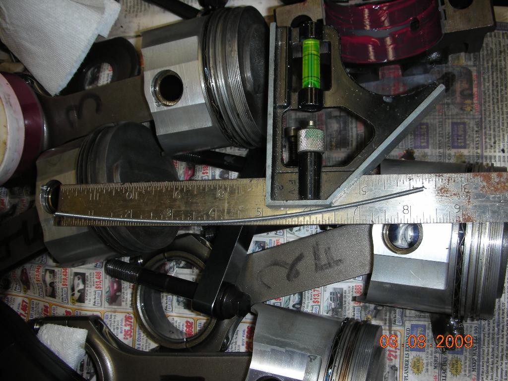 Piston rings (of course the liners have been honed, no pictures of that) - verify piston ring gap by putting in a liner and pushing down with a piston (so it's flat with the liner) and measure the end gap with a feeler gauge. Top ring gap for 87mm liner should be 0.014", 2nd ring gap should be 0.011". If gap is too small, file the end of the ring. There are tools to do this more quickly and evenly. I do this "old school" with a hand file, and the ends are not totally flat - I check often and correct the angle of the file so the ends are pretty good.
