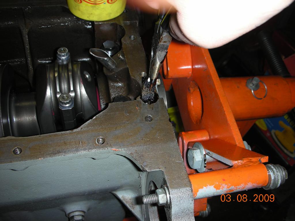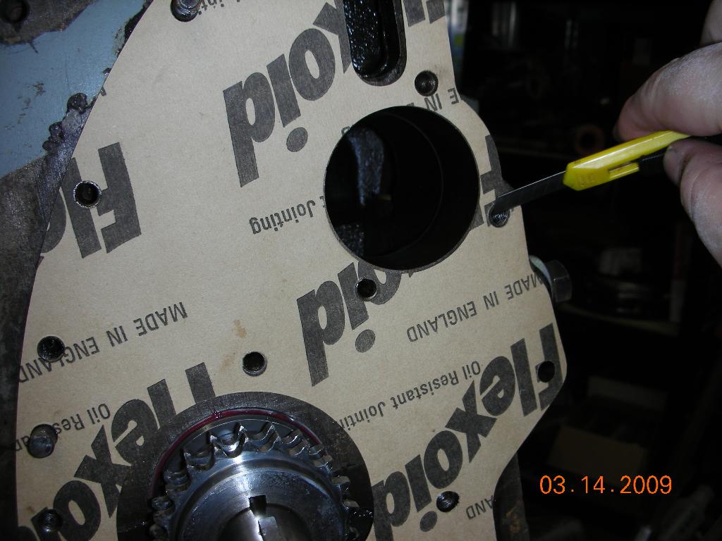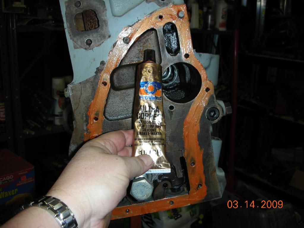 Trim the front plate gasket so the holes match the block. I use Ultra Copper on both sides of this gasket - the Indian Head I used last year leaked.