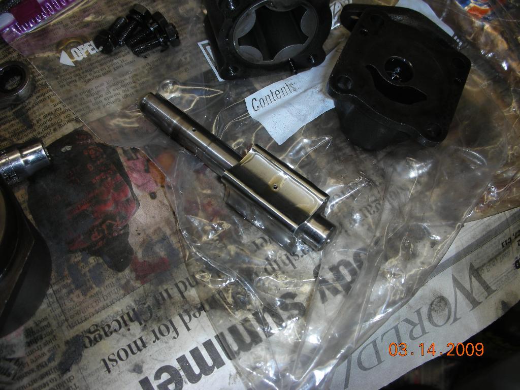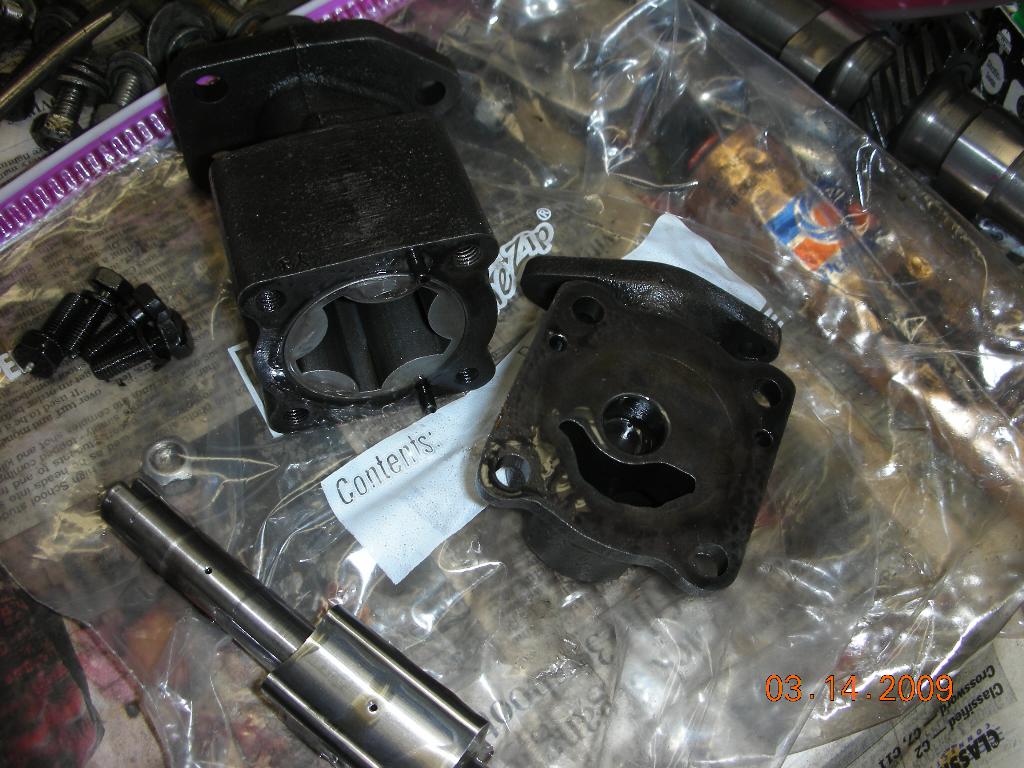 Steve Yott's uprated oil pump (contact Steve here: tr4@wi.rr.com ) Fixes a couple of failure modes of stock pump. Rotor is supported on BOTH ends, reducing flex and commensurate stress on the shaft. Rotor is not a separate part, it's integral with the shaft. There are oil galleries so that none of it will be metal to metal once it's spinning. Very cool.
