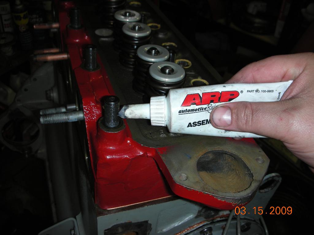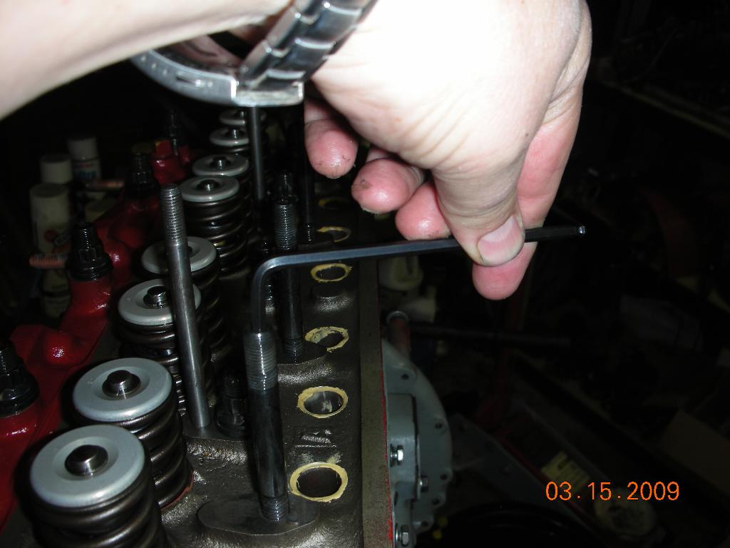 Attaching the rocker assembly. With the ARP studs I can torque to 40 ft lbs.