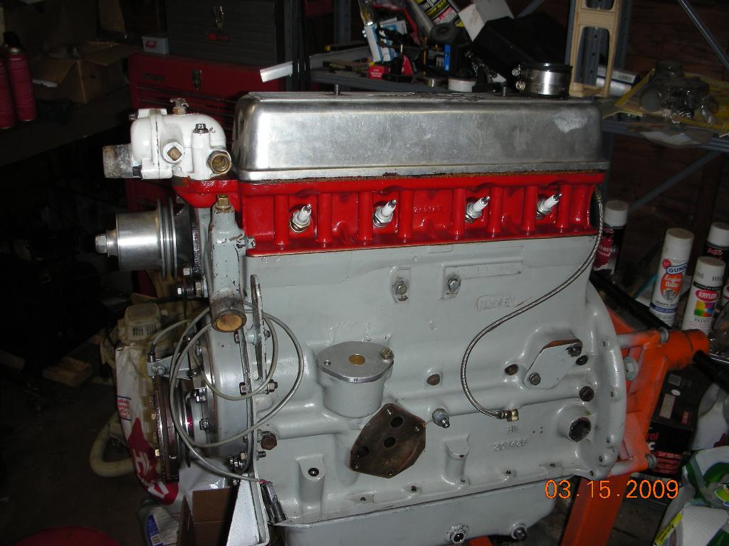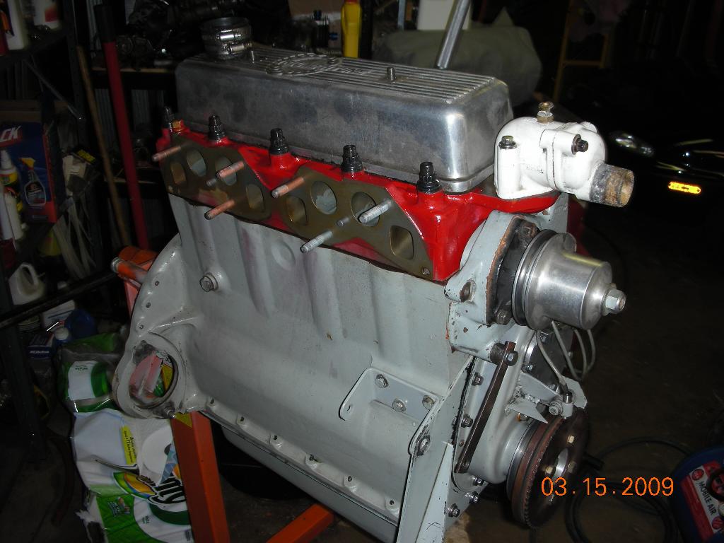 Attach water pump, thermostat housing, valve cover, external rocker arm oil feed, and in my case, oil pump shaft. There's a bit more messing about with a proper distributor.