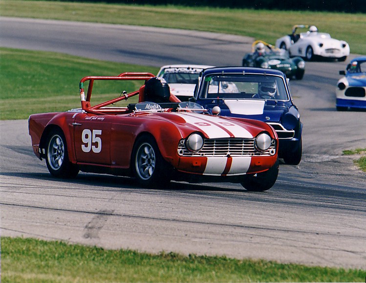 Jack was done for the weekend. Prior to this incident we had a brilliant dice in practice Saturday morning where we were feet from each other the whole time. This makes it all worthwhile! The Sunday morning enduro race entry was moved from new blue to the red rocket. In the enduro, Tony in the red rocket was keeping up (and even passed at one point) a very fast Lotus 7. The red rocket was gaining in the corners and losing on the straight (opposite what I'd expect). In the process, Tony set a fast lap mark for the uncle jack racing team: 1:35.421. Previous best in new blue was 1:36.1 by both Jack and Tony. Unfortunately, the transmission gave up the ghost after about 45 min. of the enduro ending the weekend for the remaining uncle jack racing team car. Further inspection after the race showed that the tranny repair would end up being less than $100 so things are much better for the red rocket than new blue.