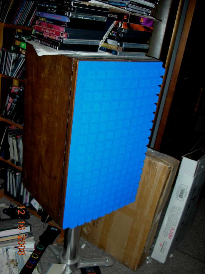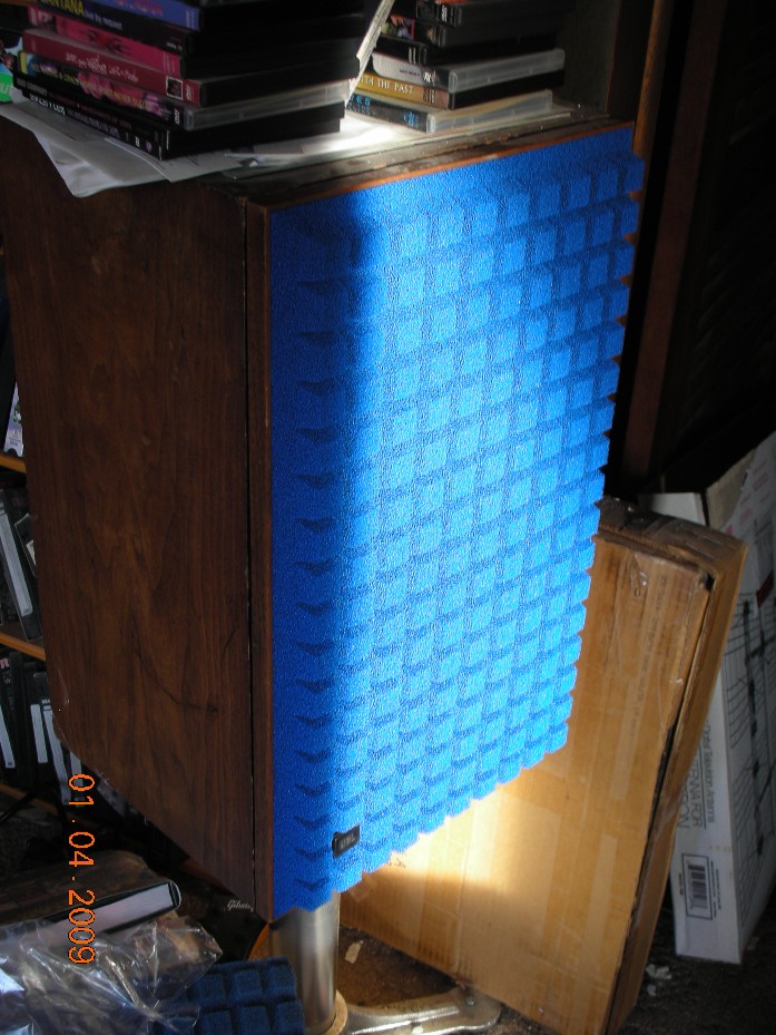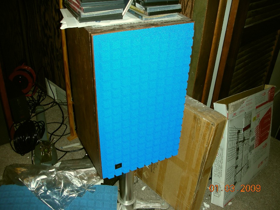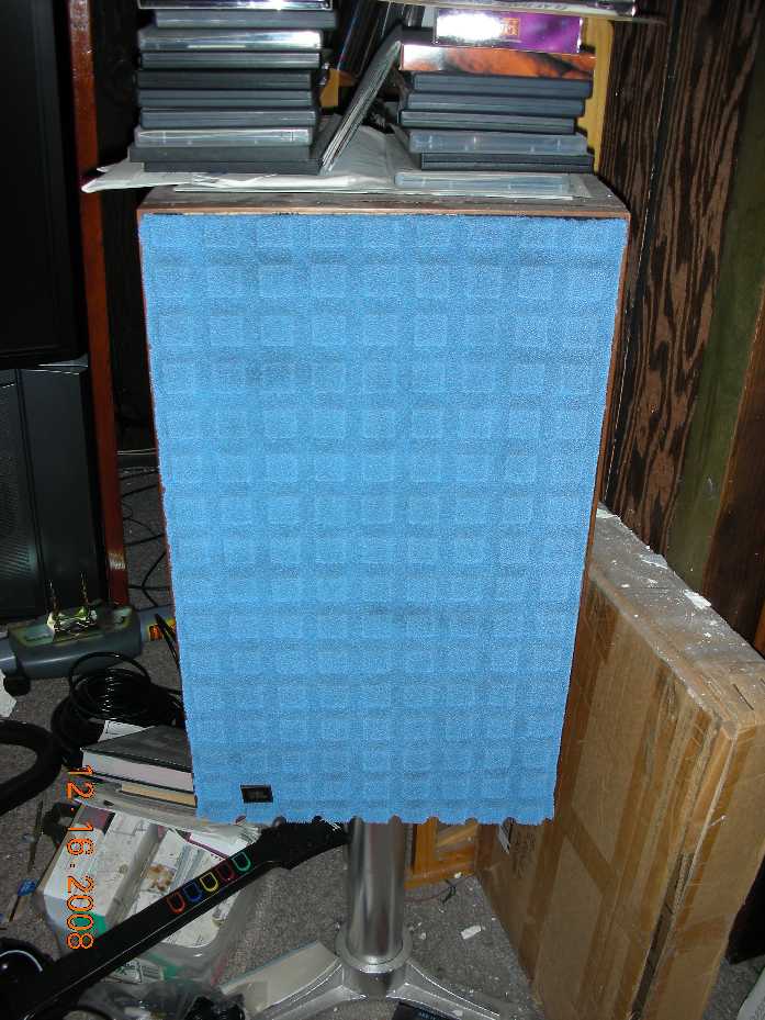 Shortly after I purchased the speakers, through searching some internet forums, I found a place that did foam that was somewhat like the original, found some fabric paint for them and they ended up like this: