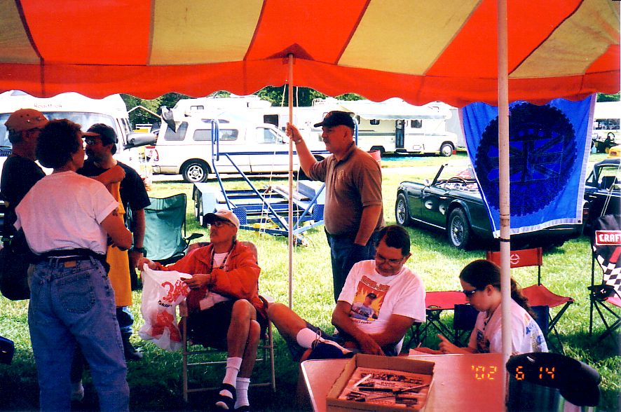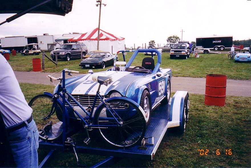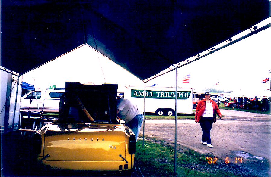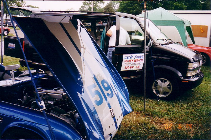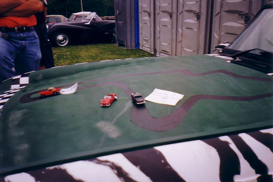 Interesting Street stuff - zebra car with diaorama of Triumph taking a "leak" on an MG, Kent Howard's TR-4a, Black TR-3 whose owner has had the car since new.