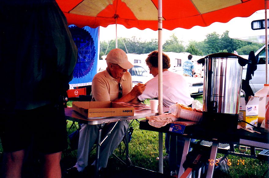 Thursday Night Party (6/13/2002). Amazing that the idea of establishing a Triumph Racers e-mail list led to a party with 150 of them in attendance, including 11 from England.