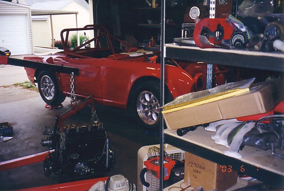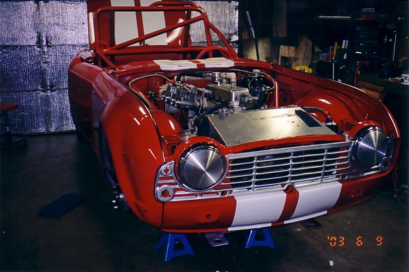 I retrieved the car from the body shop Saturday morning 6/7/03. I have the weekend and 4-5 weeknights to assemble the car in time to get it on the dyno and do a shakedown run at Blackhawk the weekend before the Mosport race. (I'm at the Ford 100th Anniversary for a week in between.)
