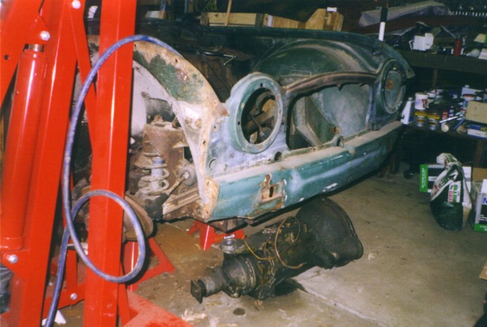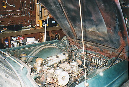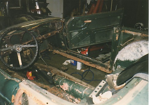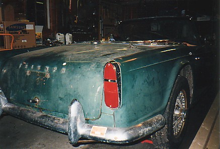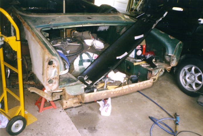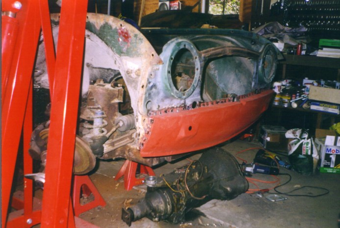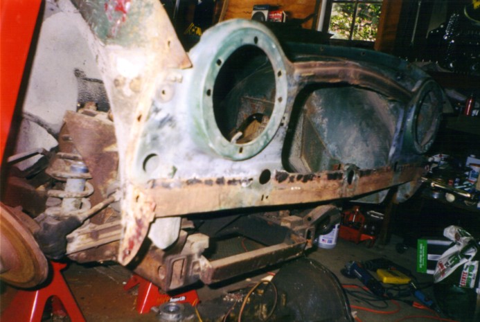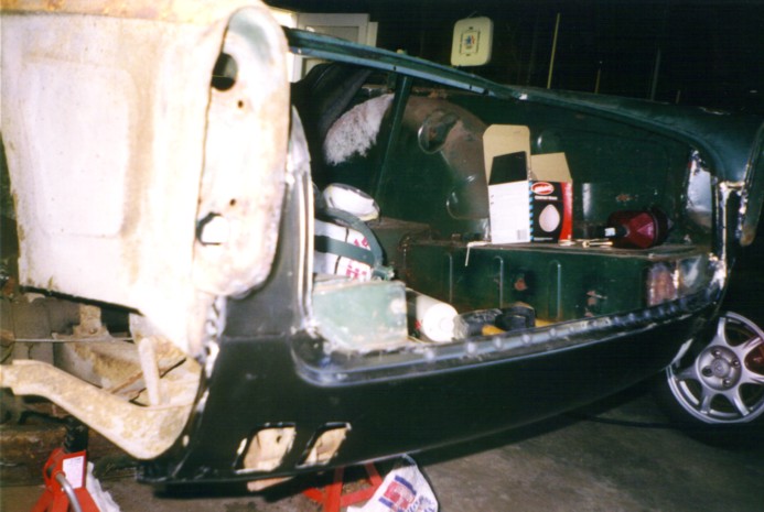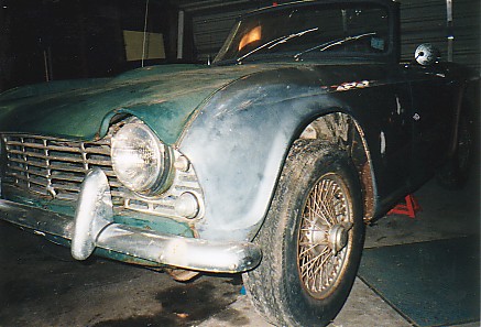 Front valance repair - old valance has the dents from someone trying to tow the car with a chain to get it started. Most Tr-4's have both front and rear valances dented up from the lucas electrics - the rear from trying to push-start the car, the front from towing the dead car.