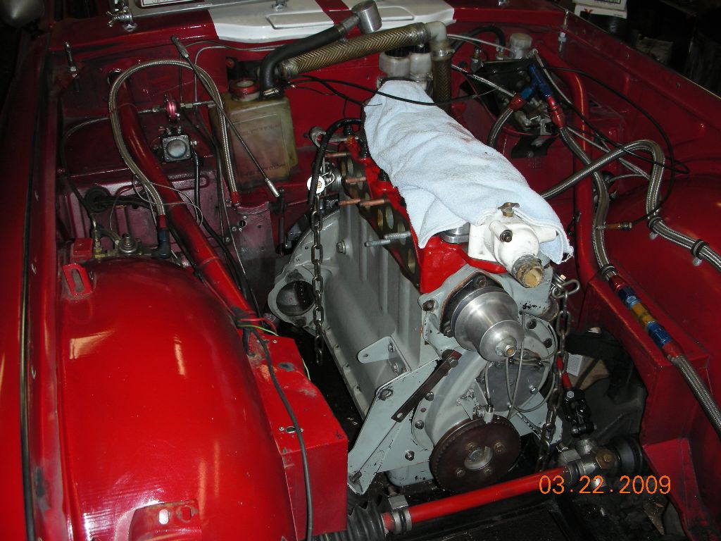 Winch that puppy into place. Note big changes in angle of engine tranny to snake it into it's home. A weight / angle shifting device is essential.