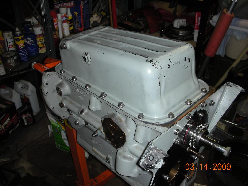 Attach water pump, thermostat housing, valve cover, external rocker arm oil feed, and in my case, oil pump shaft. There's a bit more messing about with a proper distributor.