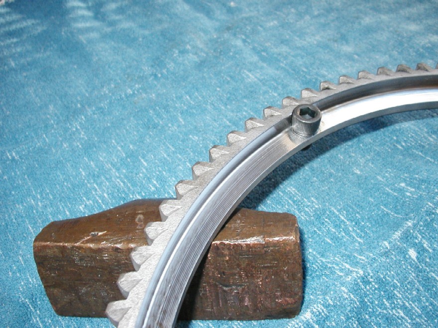 Lightened ring gear. Reduces weight from about 3 lb to about one lb. Fits all TR3-4 series with the bolt-on ring gear. At $125 it isn't cheap due to the machining difficulty. You supply the ring gear and the socket head bolts, the price is for machining only. Contact Tony at tony@tonydrews.com. Quantity discount is possible.